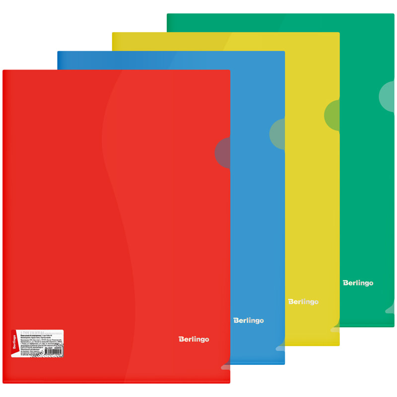 Уголок А4 180мк ассорти Berlingo разнные цвета