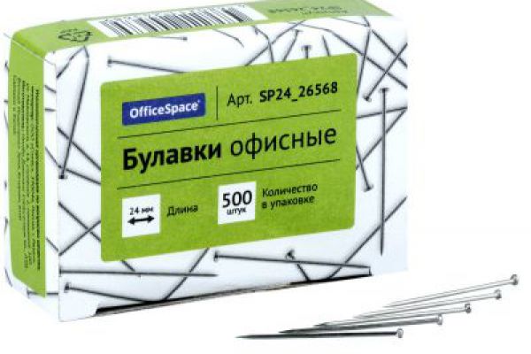 Булавки офисные 24мм 500шт карт.кор. 24_26568 СПЕЙС 281001