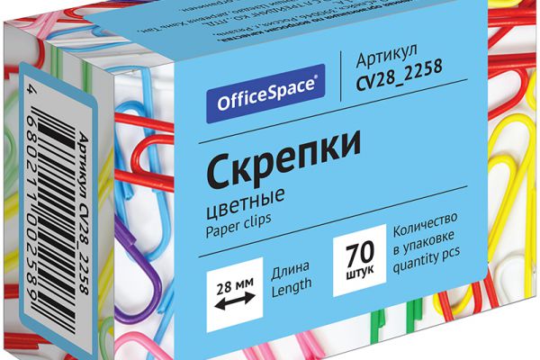 Скрепки цветные 28мм 70шт карт.кор. 2258 СПЕЙС 186683