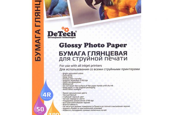 Фотобумага DeTech 180gm2, glossy, 4R, 50л (PP180G 4R 50)