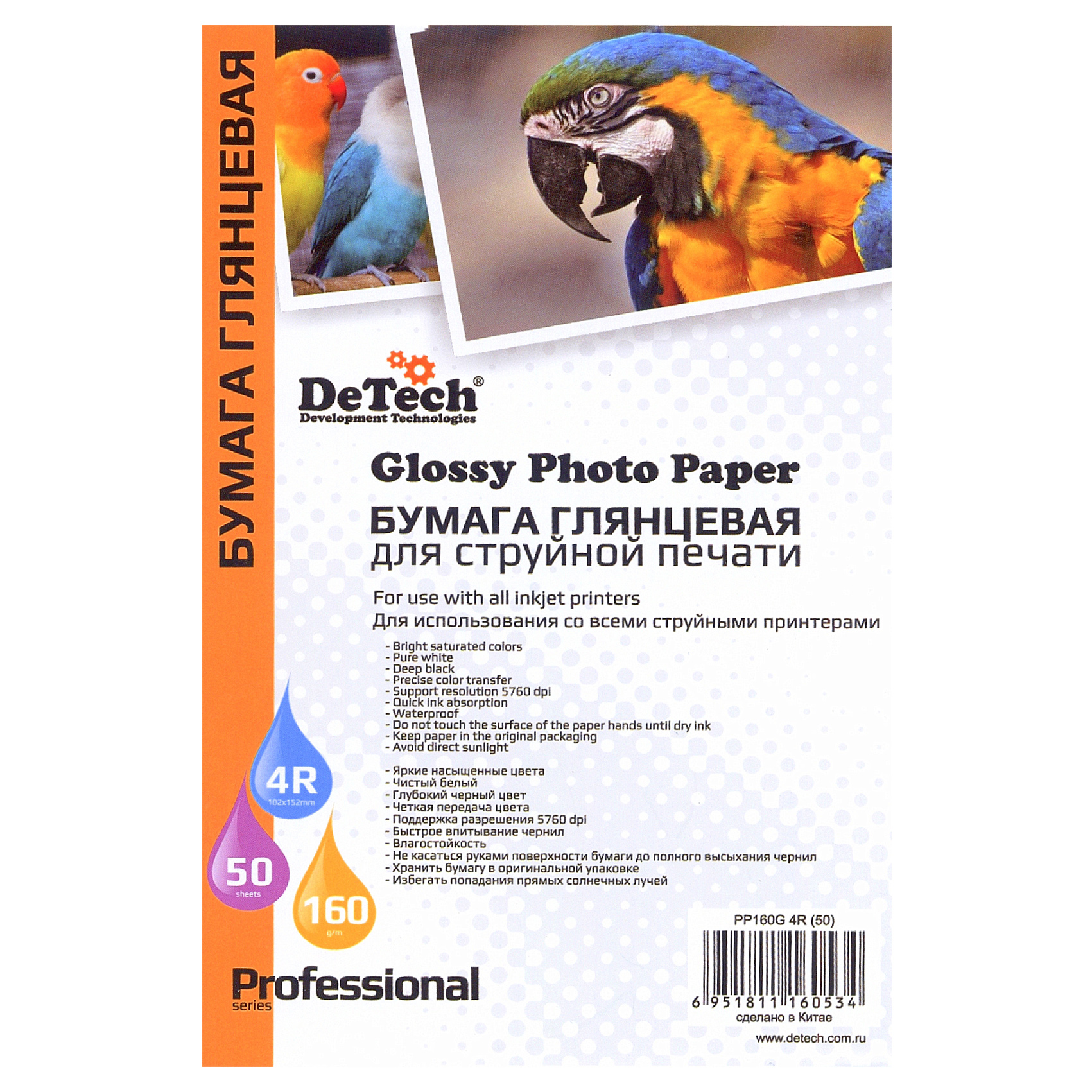 Фотобумага DeTech 160gm2, glossy, 4R, 50л (PP160G 4R 50)