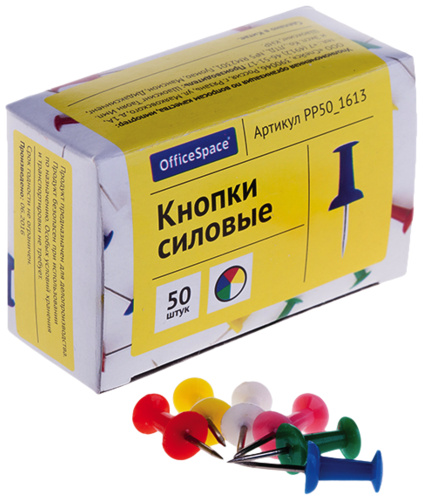 Кнопки-гвоздики цветные 50шт карт.кор. 50_1613 СПЕЙС