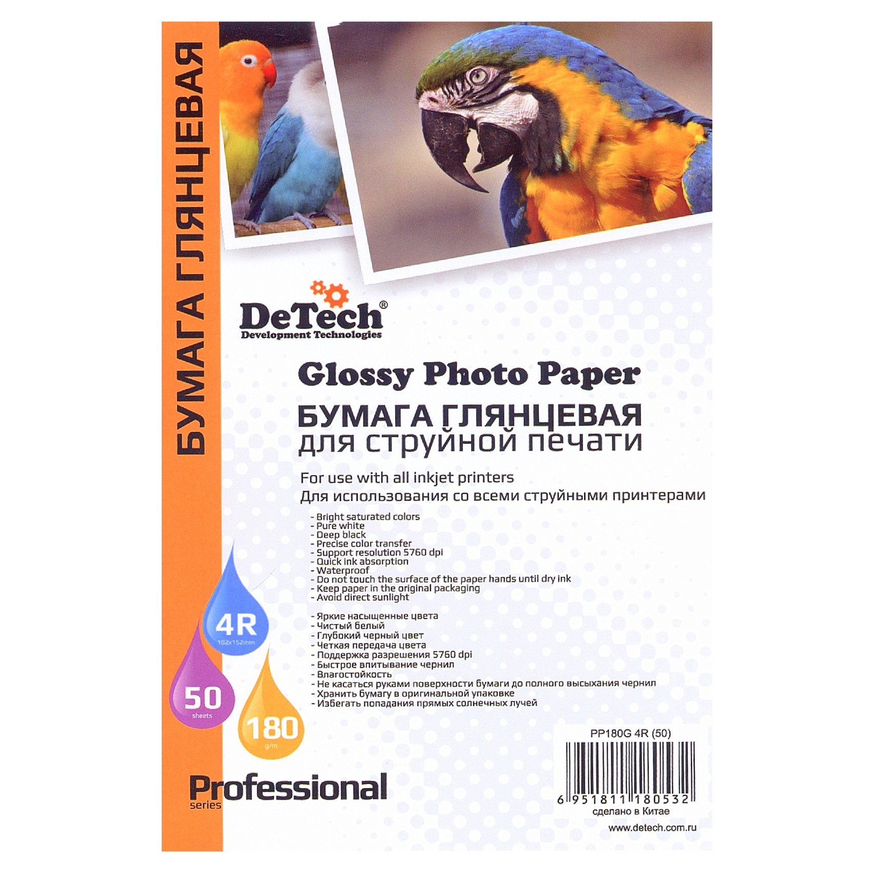 Фотобумага DeTech 180gm2, glossy, A4, 50л