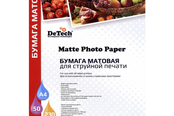 Фотобумага DeTech 230 matte PP230M 4R (50)