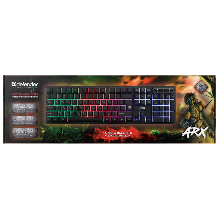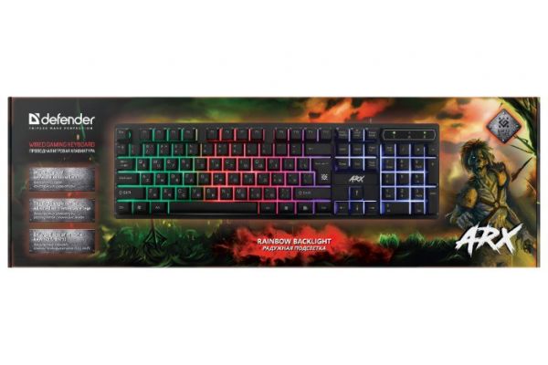 Клавиатура проводная игровая Arx GK-196L, радужная подсветка, defender