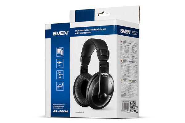 Гарнитура накладная SVEN AP-860MV, шумоподавление, кабель 2,2м
