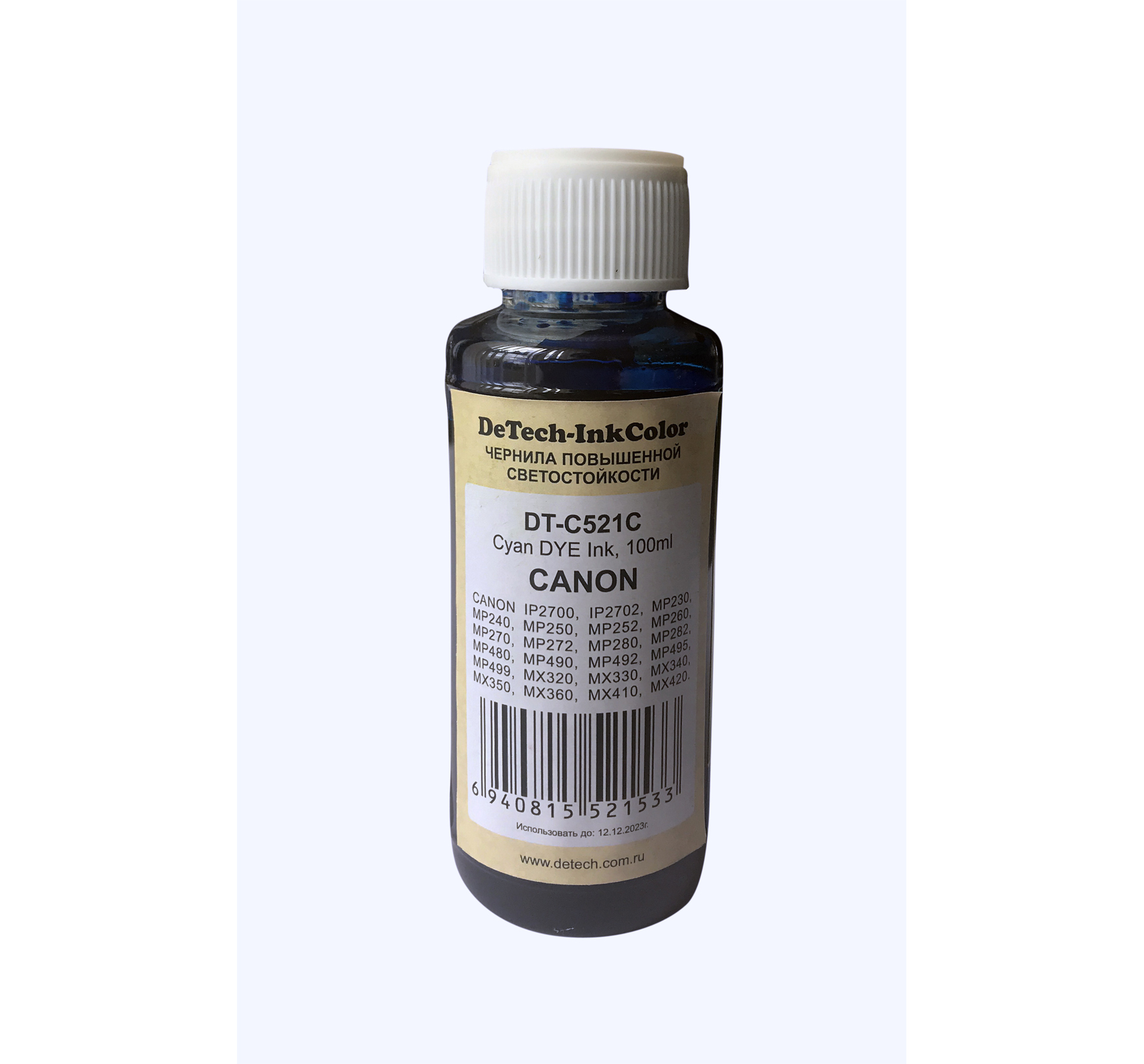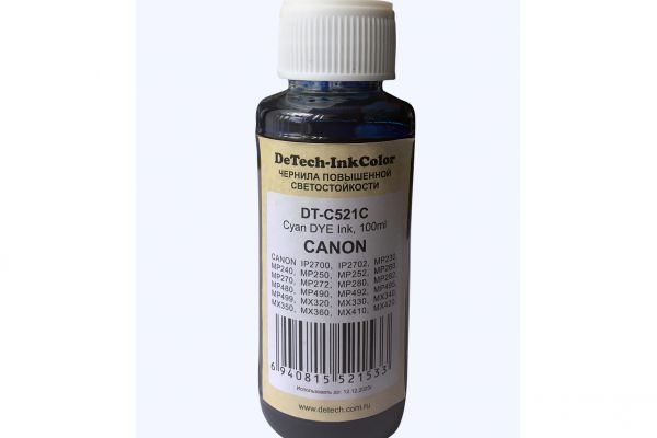 Чернила DeTech Canon DT-C521 Cyan (100ml)