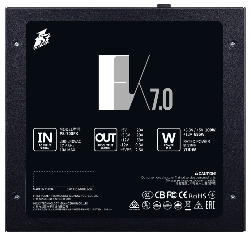Блок питания 700w 1STPLAYER PS-700FK ATX 2.4 APFC 120mm fan