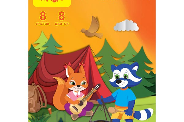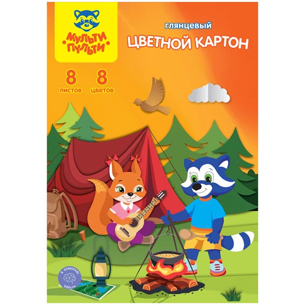Картон цветной А4 мелован. 8цв. 8л Приключения Енота 31570 Мульти-Пульти