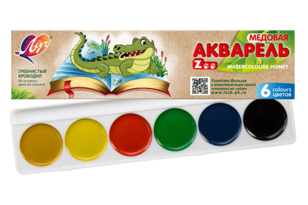 Краски акварельные 6цв. Zoo без кисточки ЛУЧ 19С1246-08