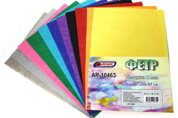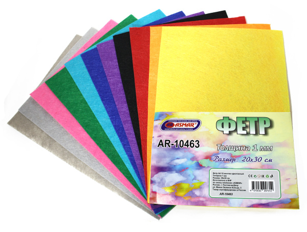 Набор фетра А4 10л 1мм однотонный цвета ассорти ASMAR AR-10463