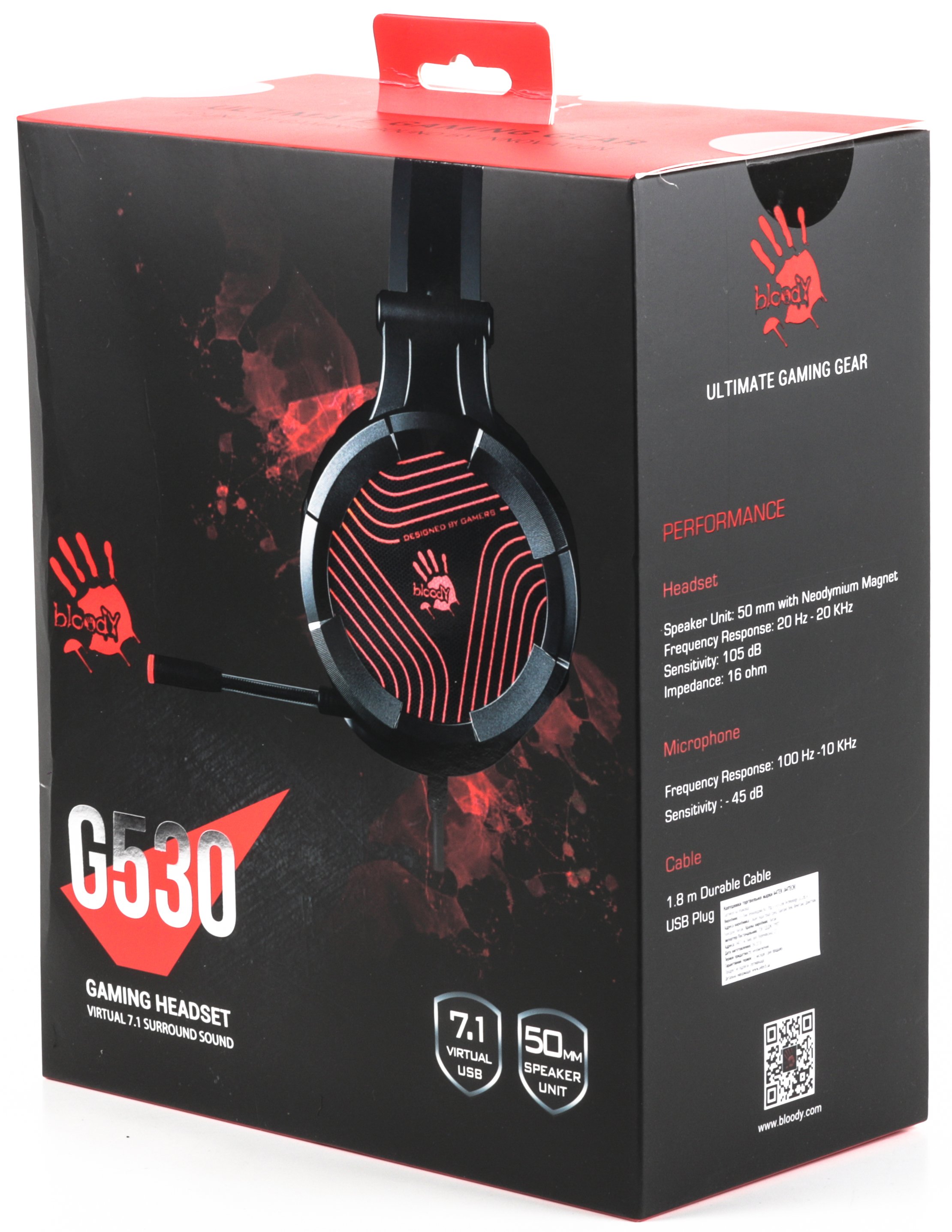 Гарнитура игровая A4 Bloody G530 черный/серый подключение USB