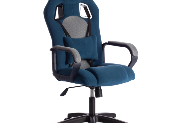 Кресло игровое Driver (22) флок/ткань синий/серый 32 TW-12 (TetChair)