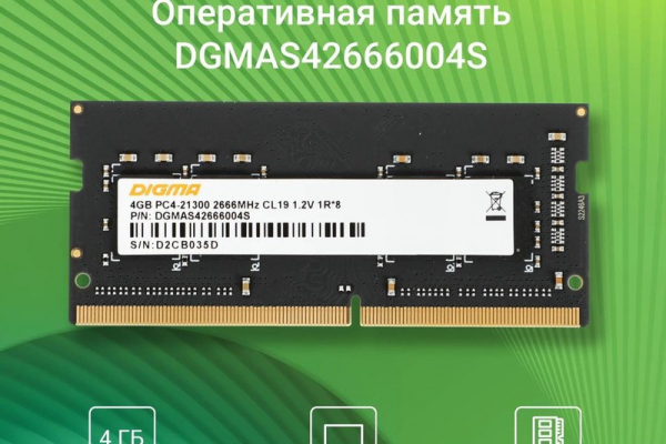 Модуль памяти SODIMM DDR4 4Gb PC21300 2666MHz Digma (DGMAS42666004S)