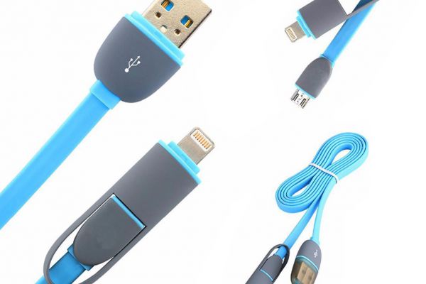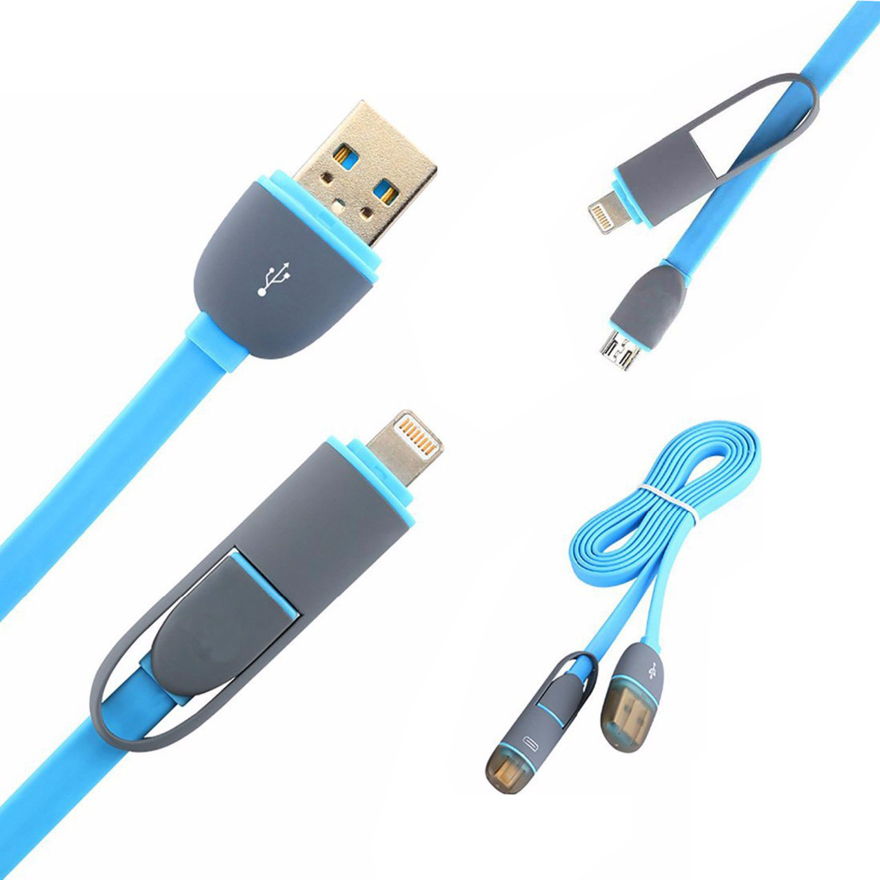 кабель micro USB 10-03BP, синий, micro USB + Iphone, 1 м Defend